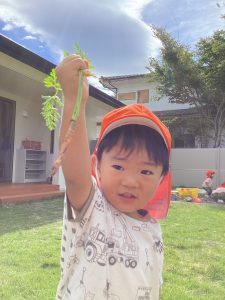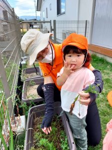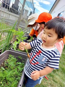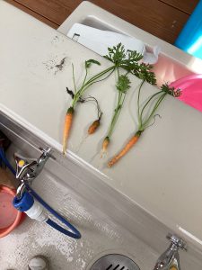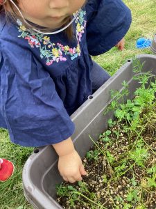 園庭のプランターで育てていたミニキャロットが大きくなったので、収穫しました🥕