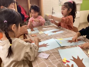 散りばめるようにする子もいれば、木の上に並べるように貼るなど