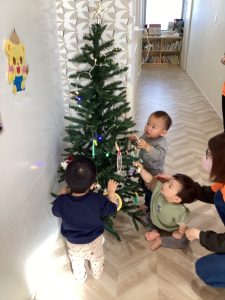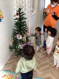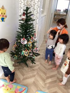 みんなが作ったオーナメントをこれからツリーに飾ろうね