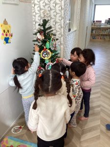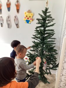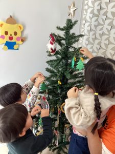 参観の様子をご紹介する前に、クリスマスツリー飾り付けの様子をお伝えします🎄