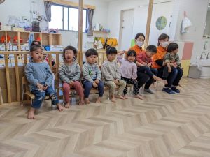 りんご組さんはもうすぐ大きい保育園へ行くんだ!張り切っています