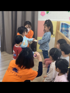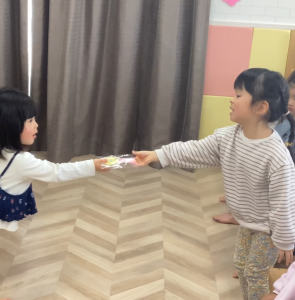 もも組、いちご組さんからりんご組さんへプレゼントを渡しました🎀