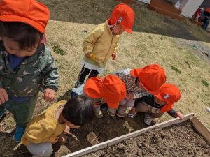 虫さんたちも元気に動き回るようになり、保育園のお庭にも…