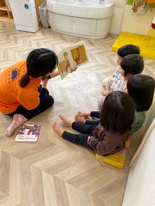 りんご組さんの寝る前の絵本の時間を紹介します。