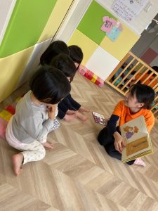 お友達と思いを共有しながらの絵本の読み聞かせも、集団生活ならではの経験ですね。