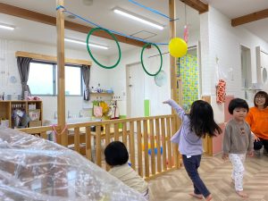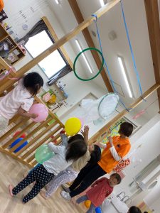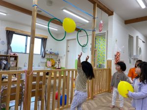 この日はふうせんをフープに投げ入れて遊びました🎈