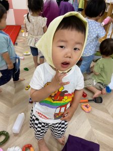 年上の子の姿をみて学びやってしようとするのは保育園ならではですね😊