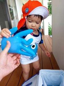 すっかりお水に触れることに慣れて、頭からシャワーをかぶったり