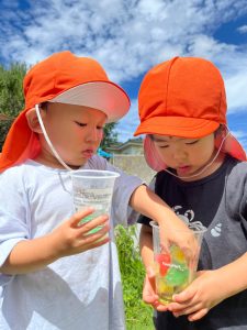 子どもたちの様々な表情を見ることができた氷遊びでした!!