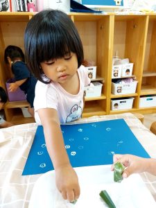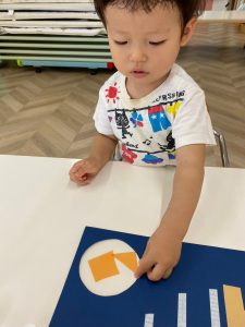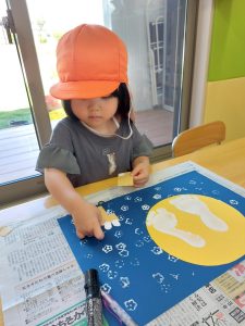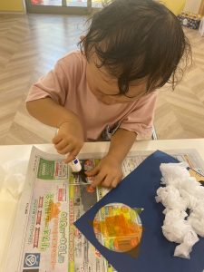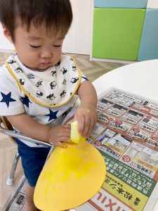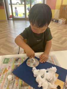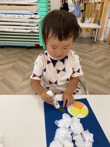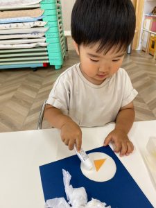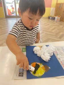 初めて使うスティックのりでしたが、反対の手で押さえながら上手にぬりぬり!