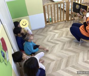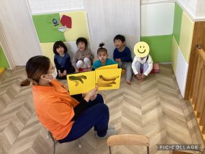 クイズ感覚で絵本を楽しんでいた2歳児のりんご組さんです🍎