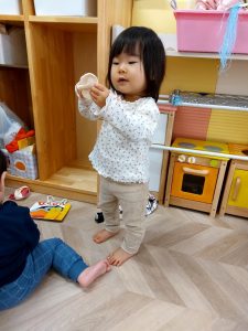 暖かい日は外に出て元気に砂遊びや追いかけっこ、お散歩をして楽しんでいます🚶♀️