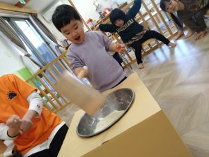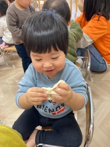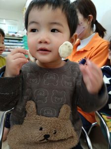 お誕生日お友達の紹介の後は餅つき会!