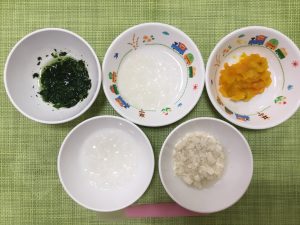 粥 かぶのだし煮 豆腐ペースト 小松菜のペースト ゆでかぼちゃ