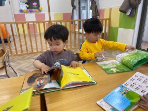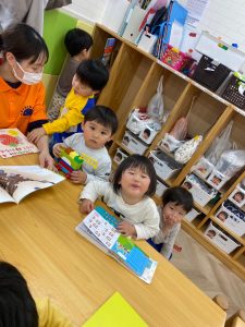 豊科園には絵本がたくさんあり、子ども達も毎日色んな絵本を楽しんで見ています📖