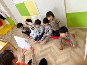 紙芝居は大きな絵やページを引く演出も合わさり、普段見ている絵本とはまた違った楽しさがあるので子どもたちも大好きなんです💕