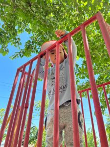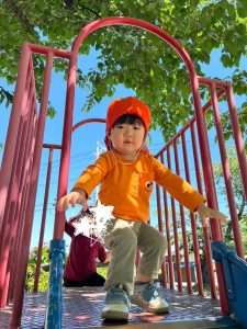 大きな滑り台にも楽々登れるようになった子どもたち😄