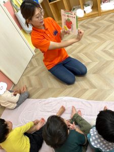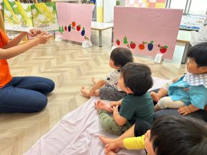いちご組さんではいちごの手遊びが流行っているので大好きないちごが出てきて興味津々です✨