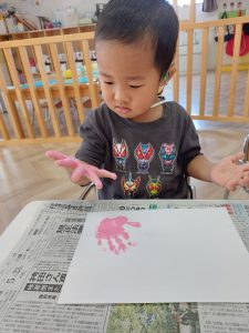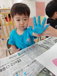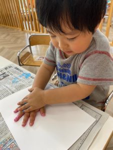 塗った手をぎゅーーーっと画用紙に押し付けると…