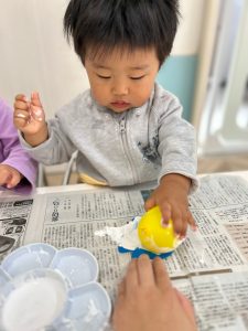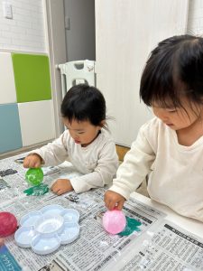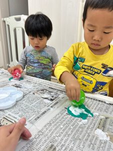 カラフルな色からどんどん白くなっていくおばけにみんな興味津々!