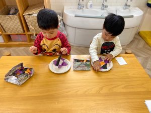 お給食にも秋の味覚が登場し、美味しそうに食べれいます😋🍠