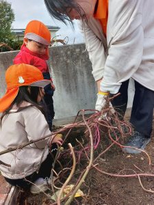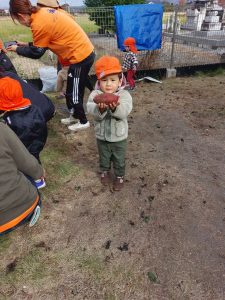 さつまいも掘り当日、今までお水をあげたりと成長を見守ってきたさつまいもが一体どんな姿になったのか、どれくらい収穫できるか、どんな形なのかワクワクドキドキしながら説明を聞いていた子どもたち☺️