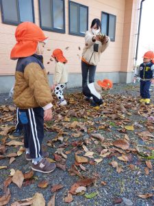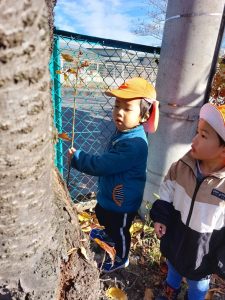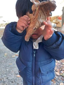 こんなに大きな枯葉も見つけたよ!
