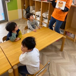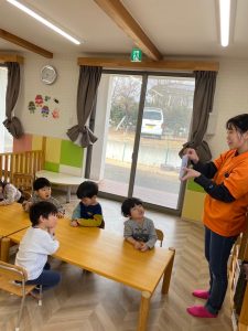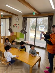 こちらはお菓子のフラッシュカードを行っているところです🎶