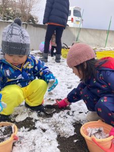 豊科園でも、子どもたち念願の雪遊びを楽しむことができましたよ❄️