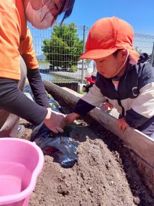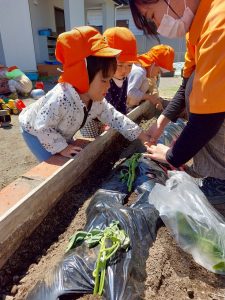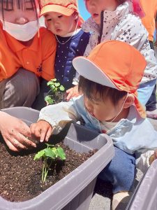 豊科園では食育の一環として、子ども達と一緒にお野菜の苗を植えました🌱