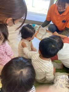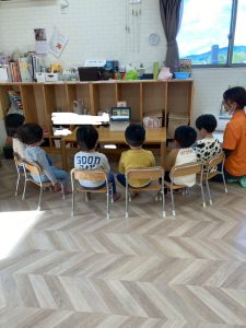 自分の順番になってちょっとドキドキしてしまいましたが、お友達がそっと手を置いて励ましてくれています☺️