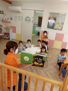 こんにちは😃 サンライズキッズ保育園豊科園です。 今日の絵本は、『ゴリラさんは』です🦍 リアルな絵の...