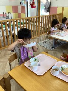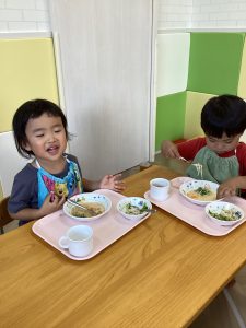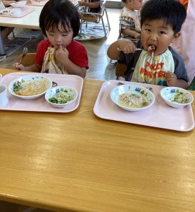 七夕会の後は特別メニューのそうめんをパクリ!
