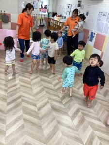 水遊びの時期なので、準備運動を兼ねて水遊びをする前に色々な身体の動きや