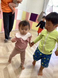 まだ小さいお友だちは難しいけれど、みんなの様子を見てニコニコ😊