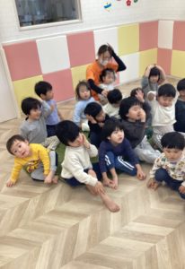 英語が始まるよ〜 と声をかけるとワクワクした顔で集まってくる子どもたち🧒✨