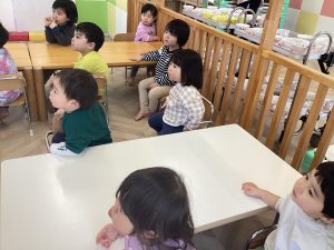 「昨日来たね。」と紙芝居のお話と昨日の経験が結びついたようです✨