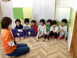 それを聞いていたいちご組さんもどんな絵本か気になっていたようです🍓