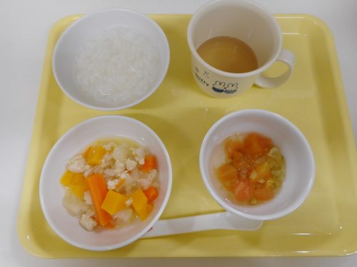 2018.07.05|給食ピックアップ 7月4日(水)の給食&離乳食&おやつメニュー 本日の給食メニュー ・ごはん ・夏野菜カレー ・ごぼうサラダ ・チーズ 本日の離乳食メニュー ・おかゆ ・夏野菜シチュー ・ゆで野菜 本日のおやつ ・ヨーグルトあえ ・牛乳 前へ 次へ