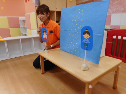 「たなばたのおはなし」のペープサート。