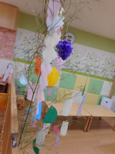 みんなで飾った笹をお部屋に移動して