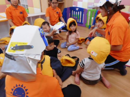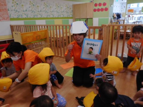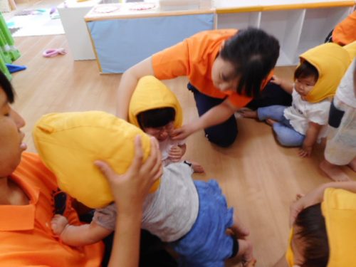 「地震だよ~!みんな集まって!!」のかけ声に