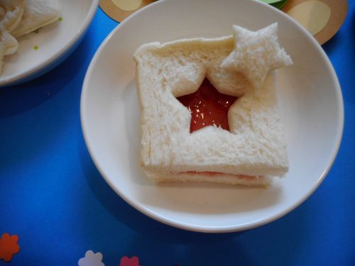 星形に型抜きされたイチゴジャムサンド。