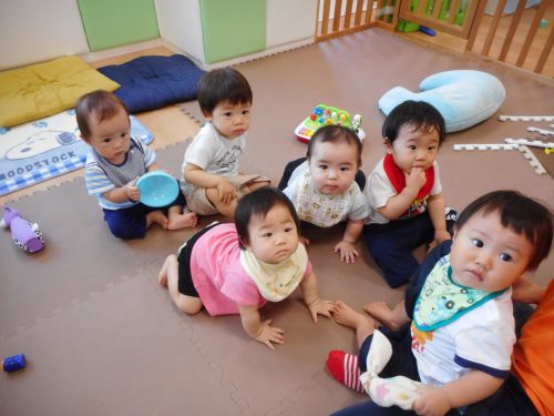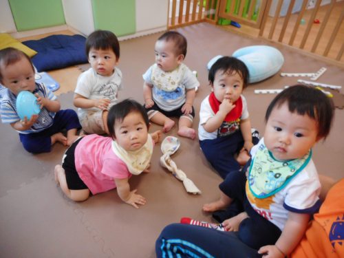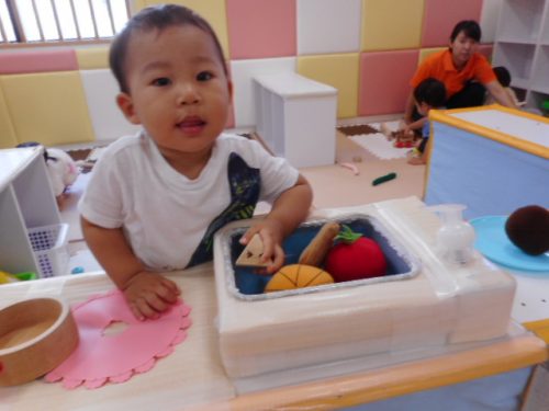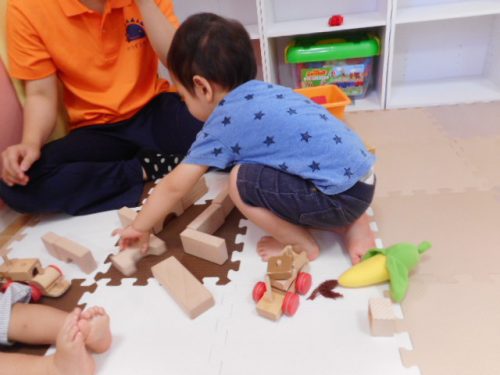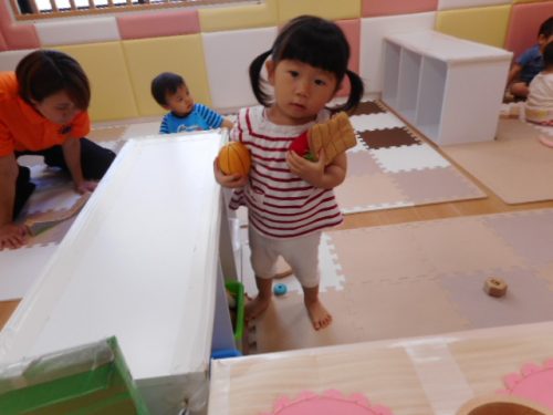 いちご組さん、ある日のお部屋での遊びの様子をのぞいてみました。