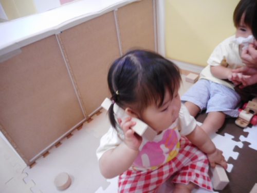 そして長い積み木は電話に・・・何をお話ししているのかな?