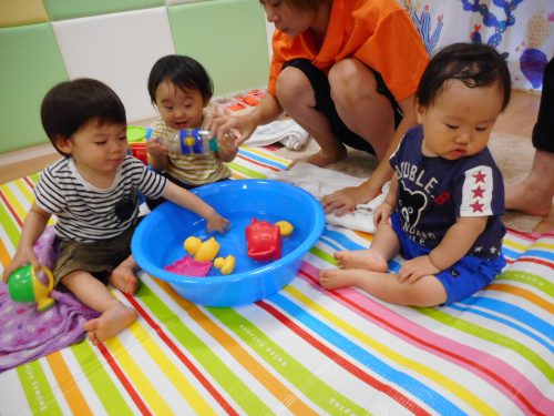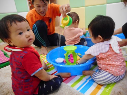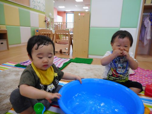 みんなそれぞれに水の感触を楽しんでいるようです!