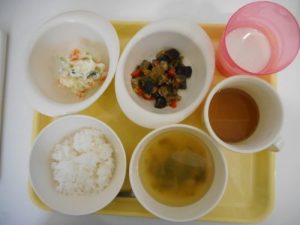 本日の給食メニュー ・ごはん ・高野豆腐の煮物 ・おかか和え ・粉ふき芋 ・たまねぎのみそ汁 &nb...