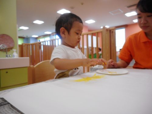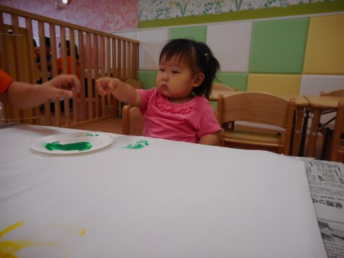 指先に少しだけえのぐをつけて、お絵かきを楽しむ