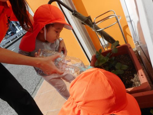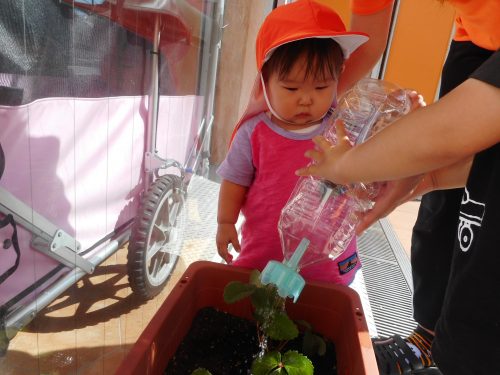 そしていちごの苗にみずをあげて、りんご組さんの