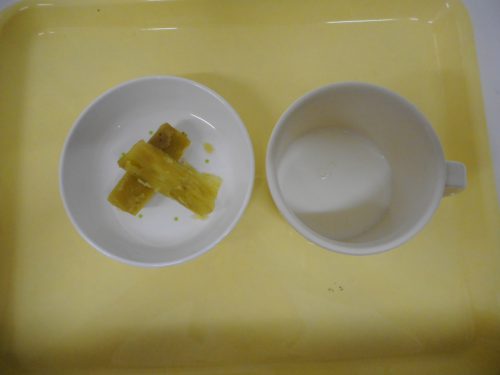 2018.11.12|その他 11月12日(月)の給食&おやつメニュー 本日の給食メニュー ・ごはん ・みそ汁 ・おでん ・きゅうりともやしのゆかり和え ・みかん 本日のおやつメニュー ・ふかし芋 ・牛乳 前へ 次へ